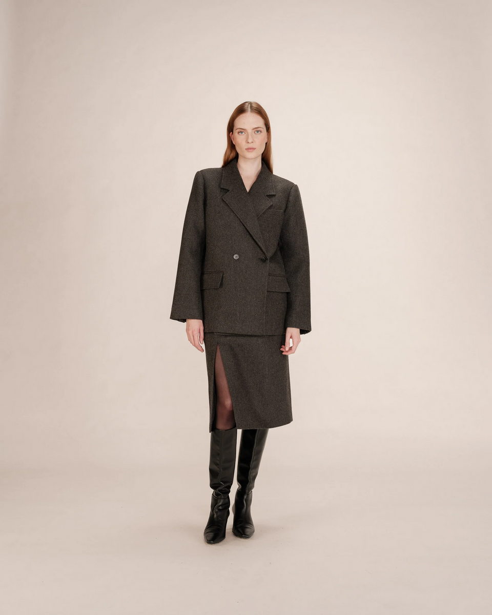 Συνδυάστε το με: Το μάλλινο παλτό THOMAS φοριέται με τη φούστα TONYA pencil, δημιουργώντας μια ταιριαστή μοντέρνα και εκλεπτυσμένη εμφάνιση. Το THOMAS μπορεί επίσης να συνδυαστεί με το τζιν JAMES με φαρδιά μπατζάκια και το πουλόβερ SATURDAY με ζιβάγκο για μια πιο χαλαρή σιλουέτα.