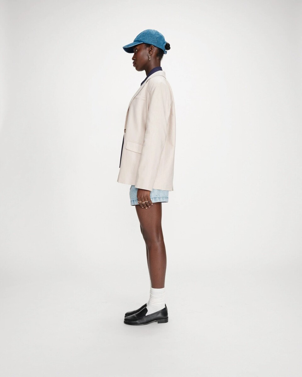 Style it with : The VELIZE tailored jacket is worn with the VALERIE striped shirt and the VITE pleated bermuda shorts for a chic and modern look, or with the VERNE denim shorts and the PEREZ cotton shirt for a more relaxed look.